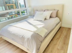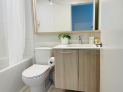 Welcome to The Oaks by Strand! This south-facing 2 bed+2 bath suite facing the quiet courtyard features a rare functional layout. Upgraded laminate floors. Amenities include: game room, party room, movie theater, co-working space, gym, and more. Conveniently located with easy access to SkyTrain, shopping mall, schools, parks, restaurants, groceries store, and SFU. Tenanted Property. Please allow at least 48hrs notice for showings.