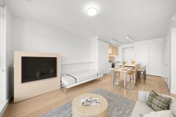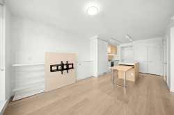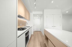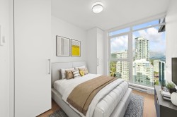 Discover Lougheed Heights by Bosa Properties – a sleek, modern 1-bedroom + den residence on the 34th floor, ideal for investors or anyone craving vibrant city living. Perched high above the city, this bright corner unit delivers breathtaking panoramic views of the mountains and downtown skyline. The open-concept layout flows seamlessly into a gourmet kitchen boasting European-inspired stone countertops, premium KitchenAid stainless steel appliances, and luxurious high-end fixtures. BosaSPACE design maximizes every inch: retractable 8-seat dining table and hidden pull-down guest bed integrated into the TV feature wall. Resort-style amenities include a heated outdoor pool, fully equipped gym, sauna, sports courts, private theatre, library, and music practice rooms.