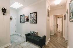 Welcome to effortless living in this beautifully maintained TOP FLOOR CORNER UNIT, with over 1100sf of bright, comfortable space with 9ft ceilings & southeast exposure that fills the home with natural light. Thoughtfully updated with gorgeous flooring throughout, a nicely renovated kitchen & paint, this 2 bed, 2 bath home is move in ready. The generous dining area is perfect for gatherings, while the cozy living room with fireplace opens to a balcony for year round enjoyment. Located in a 55+ community, residents enjoy resort style amenities including an indoor pool, fitness centre, lounge, library, & workshop. Fees include radiant heat & hot water, & location is unbeatable. Steps to Coffee Shops, Coquitlam Centre, restaurants, SkyTrain & Lafarge Lake. Open House Sat 12-2 & Sun 3-4:30pm