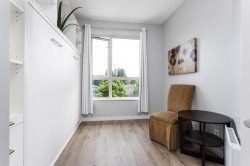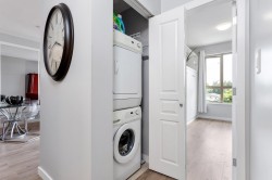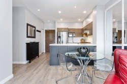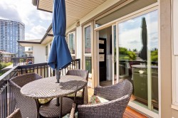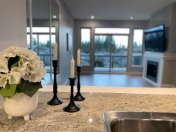 TOP FLOOR! Move in anytime. This fabulous 2-bed, 2-bath home features soaring 9' ceilings, fresh paint, upgraded lighting, updated flooring & built-in queen Murphy bed, all thoughtfully designed for your Comfort & Convenience. The kitchen boasts stainless steel refrigerator, gas range, dishwasher, microwave, granite countertops, & custom cabinetry for exceptional storage. This building has a brand-new roof & includes TWO PARKING stalls & a STORAGE locker, plus access to the Nakoma Club, offering resort-style amenities including a clubhouse, outdoor pool, hot tub, gym, theatre room, and two guest suites. Perfectly located just steps to SkyTrain, Coquitlam Centre, top-rated schools, West Coast Express, & Lafarge Lake.