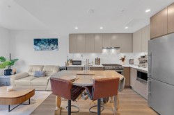 Welcome to Port & Mill by Streetside. This one bedroom + den offers north facing mountain views with plenty of room in den for office, second bed or storage. The large kitchen is completed with quartz counters, gas range and modern cabinets. Primary bedroom connects to the bathroom for convenience and ease. It is situated in the perfect location for all amenities including skytrain and groceries. This suite provides in suite laundry, one parking and one storage unit. The strata is complete with a gym, playground, outdoor BBQ and amenity room with full kitchen. Unit 409 is waiting for you to call it home - explore the possibilities with this wonderfully bright space!
