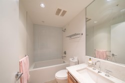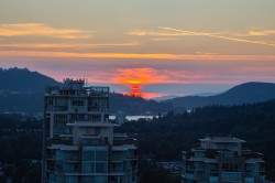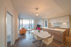 Welcome to M3 by Cressey, Coquitlam's tallest and most sought-after tower. This 2bed/2bath home also includes a spacious den with a large window, easily used as a third bedroom. The southwest-facing corner layout, 9' ceilings, floor-to-ceiling windows, air conditioning, and an efficient floorplan designed for modern living. The signature CresseyKitchen is equipped with Blomberg & Fulgor Milano appliances, double refrigerators, and a wine cooler. Enjoy sweeping, unobstructed views from every room. The primary suite features a spa-inspired ensuite with radiant heated flooring. Exclusive access to the Summit Club on the 47th & 48th floors, offering 9,000 SF of world-class amenities including gym, lounge and entertainment spaces. Just steps to Coquitlam Centre, SkyTrain, Lafarge Lake and more.