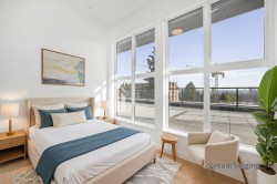 Florin – Exclusive Penthouse! Brand new 2 bed + den with breathtaking panoramic views. One of only 8 unique units, featuring an expansive 905 sq. ft. terrace, soaring 10.5' ceilings, central A/C, Fisher & Paykel appliances, and a smart thermostat. Includes EV-ready parking and a storage locker. Enjoy premium amenities: fitness centre, workshop, BBQ area & more. Steps to Lougheed Town Centre, SkyTrain, shops, dining, and golf.