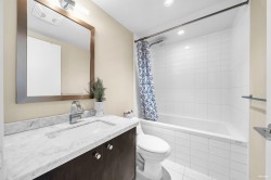 Welcome to EDGEMONT by BOSA – a luxurious high-rise in the heart of Coquitlam! This bright and spacious 781 sqft southeast-facing 2 bedroom, 1 bathroom corner unit features hardwood flooring in the living/dining area, a functional open-concept layout, granite countertops, gas cooktop with electric oven, stainless steel appliances, and a built-in desk working station perfect for a home office. Enjoy the covered balcony with green views and access to top-tier amenities including a fully equipped gym and a lounge with full kitchen. Just steps to Lafarge Lake, Coquitlam Centre, Douglas College, Pinetree Secondary, Aquatic Centre, Glen Pine Pavilion, library, SkyTrain, parks, and more. 1 parking & 1 locker.