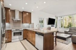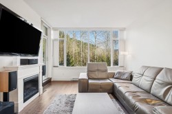 Welcome to Cascade on Westwood Plateau. Nestled among majestic evergreens, this serene 2 BED, 2 BATH + DEN residence offers sophisticated living in a tranquil natural setting. Featuring 1290 SF of bright, open living w/9’ ceilings & expansive picture windows framing peaceful greenbelt & mountain views. The open-concept gourmet kitchen is equipped w/Fisher & Paykel/Bosch appls, flowing into a warm living area w/cozy fireplace & access to a generous balcony w/a private treed outlook. Formal dining area w/custom built-ins & a versatile den ideal for home office or guest room. Non-adjacent bedrms, including a king sized primary retreat w/spa-inspired ensuite, double sinks & walk-in closet. Steps to IGA, transit, hiking trails, schools. 2 parking & 1 locker.