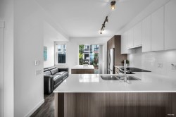 Welcome to this bright and spacious two-bedroom townhome in the desirable Riley complex at Burke Mountain. Enjoy breathtaking panoramic views from the open-concept living and dining areas. The modern kitchen features stainless steel appliances, two-tone cabinetry, an island, and a cozy breakfast nook, with direct access to a large, private yard—perfect for entertaining. Upstairs, the primary bedroom offers stunning views, dual closets, and a stylish ensuite with a walk-in shower. A second bedroom is located near a full family bathroom. The tandem garage accommodates two vehicles and includes extra space for storage or a workbench. Visitor parking and mailboxes are conveniently located just outside. Close to trails, parks, top schools, transit, and shopping. OH: 11/1(Sat) 2-4PM
