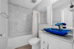 This elegant Deercrest Townhome showcases unobstructed views of Mount Baker and surrounding forest, setting a serene backdrop for elevated living. Renovated in 2018 with refined details, the home features a magazine-worthy kitchen with Thermador and KitchenAid appliances, spa-inspired bathrooms with heated floors, engineered hardwood, luxury carpets, custom trims, a Polyaspartic-coated garage, and recent upgrades including furnace and hot water tank—balancing timeless finishes with modern comfort. Within a gated community offering clubhouse, gym, pool, and hot tub, steps to IGA, CIBC, Shoppers, Starbucks, dining, medical and dental clinics, fitness and beauty services, this residence blends spectacular views, luxury interiors, and everyday convenience.