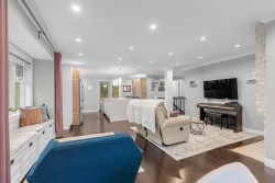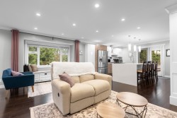 Welcome to this stunningly renovated, move-in-ready home! Featuring an expansive open-concept design, this 5-bed, 3-bath residence shines with engineered flooring, quartz countertops, and stainless steel appliances. Significant upgrades include new siding, windows, doors, and designer paint throughout. The walk-out basement, with its separate entrance, offers excellent potential for a 1 or 2-bedroom mortgage helper or in-law suite. Perched on a rare corner lot, the property boasts a park-like backyard bordered by privacy cedars and breathtaking mountain views. Complete with an attached garage and built-in vacuum, this home offers incredible value and versatility.