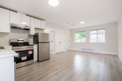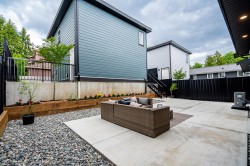 This is a thoughtfully designed brand new single family home offer 2,516 sf of total space - 1,962 sf in the main home and 554 sf 1 bed 1 bath coach house allowing rental income opportunities. In the main home are 3 bed, 2.5 bath, and den with a timeless design and brand new stainless steel appliances, a walk-in pantry, radiant heated flooring, AC, and security cameras surrounding the home. Outside is a low maintenance beautiful yard space perfect for BBQ and hosting. Upstairs are the bedrooms with a view of the Fraser River and the city with a spacious walk-in closet in the master bedroom and a 5-piece luxurious bathroom. This home has it all with its close proximity to shopping, public transportation, golfing and more while located in a quiet no-through street. Move-in ready.