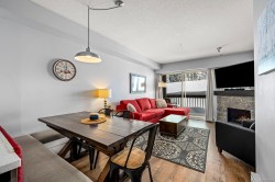 UPDATED, SLOPESIDE! Located in Deer Lodge, a true ski in/ski out complex, this cozy 2-bedroom, 2-bathroom condo has been wonderfully renovated. The interior updates include: vinyl plank flooring, newer furniture, appliances, fixtures, lighting, quartz countertops, ceramic backsplashes, rock surround on the fireplace, entry built ins and paint. The lock-off unit is north facing with plenty of natural light and views of the ski runs. Everything viewed in the unit is included in the price. The building features a large hot tub and easy access to the slopes. Each unit has one underground parking stall and a 7'x5' private storage locker. Monthly strata fees of $761 include Wifi, cable, propane and hot water, snow removal plus regular strata expenses. This property is rented almost 100% of the time when not used by the owner. It is a short walk to the restaurants and hub of activities. GST is payable on top of the purchase price. Quick possession is available.