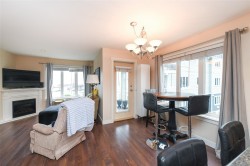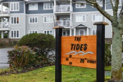 This well-maintained, 2 bed/2bath, corner-unit condo in The Tides is centrally located with mountain views & glimpses of the river. Stroll out your front door & in a few short steps you’re on the scenic Courtenay Riverwalk that winds along the river & estuary, as well as the oceanside Airpark Trail. This bright unit features open plan living with large windows & a spacious covered deck off the dining area. The efficient kitchen offers maple Shaker cabinetry & ample counter space & the living room has a cosy electric fireplace. The primary bedroom includes a walk-through closet leading to a private ensuite. Features: in-suite laundry with stacking washer/dryer, newer hot water tank (2023), building elevator & 1 secure underground parking space & storage unit included. Fantastic opportunity for comfortable, low-maintenance living in a sought-after location close to downtown amenities.