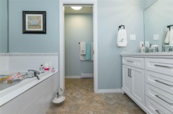 Welcome to Orchard Gate! This completely updated executive penthouse offers over 1,800 sq ft of open concept living space, featuring 2 bedrooms plus office/den. The sprawling chef's kitchen boasts quartz and granite countertops, all new appliances, built-in wine cabinet, large pantry, and an eat-up bar, perfect for entertaining. The living and dining areas are spacious enough for family gatherings, centered around a cozy gas fireplace. Enjoy summer with the heat pump A/C and an outdoor deck with an awning. Recent updates include fresh paint, new carpets and baseboards, updated flooring in the kitchen, laundry, and baths, new countertops and backsplash, and new hardware for windows and cabinets, and so much more. Additional features include hardwood flooring, crown molding, newer gas hot water tank, and a separate garage with overhead storage and side door entry. This immaculate 55+ condo is within walking distance to downtown amenities such as theaters, parks, coffee shops, groceries