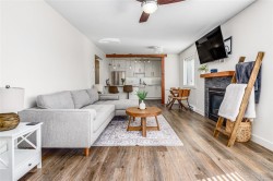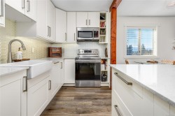 Quietly tucked into a cul-de-sac, this updated top-floor home offers privacy, mountain views, and aprime location near Sandwick Park, the hospital, and everyday amenities. Filled with natural light,the open-concept living space features a cozy gas fireplace, spacious deck, and a renovated whitekitchen with quartz countertops, stainless steel appliances, and a hidden dishwasher.