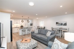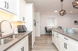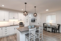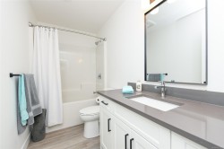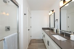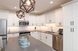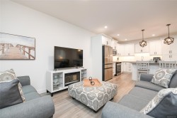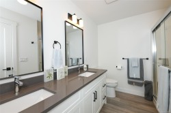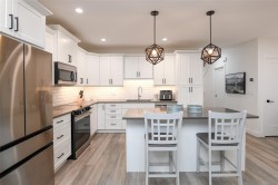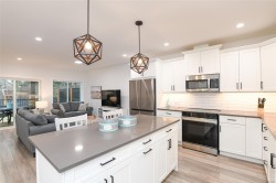 Fantastic half duplex shows better than new! This 1745sqft, 3 bed/3 bath home was built in 2024 and offers modern comfort & thoughtful upgrades. The bright main level features 9’ ceilings & has an open-concept layout ideal for everyday living & entertaining. The beautiful kitchen is the heart of the home, complete with central island, stainless appliances, quartz countertops, under-cabinet lighting & plenty of crisp white cabinetry. Three spacious bedrooms up, including a primary with walk-in closet & stylish ensuite featuring double sinks, quartz counters & walk-in shower. Convenient laundry & bonus den/office area add extra functionality/flexibility. Additional highlights: single-car garage, crawlspace with exterior access, heat pump, sprinkler system & new home warranty. Fully fenced yard with covered patio backs onto green space. Located in the heart of Tin Town, this home is walking distance to coffee shops, parks & shopping, making it an ideal blend of lifestyle & convenience.