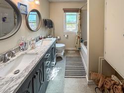 Situated just on the edge of the city limits with stunning mountain views, this rare 0.26-acre property offers the perfect blend of space, comfort, and convenience. The 1,420 sq. ft. bungalow has been thoughtfully maintained and upgraded, featuring three spacious bedrooms or 2 + den, two beautifully updated bathrooms, and the added convenience of main floor laundry with front-loading machines. The bright kitchen and dining area flow seamlessly in an open floor plan, while the living room showcases hardwood floors and a charming wood brick fireplace as a cozy focal point. A side enclosed porch leads to a partial basement, providing abundant storage and direct access to both the single carport and the backyard. Practical updates include a high-efficiency furnace installed in 2022, new electrical service, a hot water heater replaced in 2018, and updated vinyl windows completed in 2010/11. Connected to city sewer just three years ago and supplied with city water, this home is move-in ready. The beautifully landscaped yard is complete with a gazebo, garden beds, and generous RV parking, making it a true gem for those seeking both lifestyle and location.