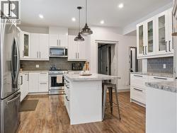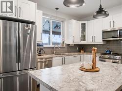 Beautiful family home situated on a double lot backing onto Barbaree Park. This 4 bedroom, 3 bathroom property offers an open-concept main floor with a spacious living room, dining area, entry, and kitchen featuring an island ideal for everyday living and entertaining. Custom built-ins and detailed woodwork add character throughout the home. Enjoy outdoor living with a large deck, greenhouse, and a charming front porch perfect for a cozy sitting area. The partially finished basement currently includes a workshop and rec area with excellent potential for a children’s play space or additional living area. A rare park-backing property with space to grow. (id:27)