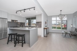Experience refined coastal living at Highstreet Flats in Southlands Tsawwassen. This bright, spacious 2 Bed + Den corner home offers an open layout with oversized windows, premium finishes, gourmet kitchen featuring quartz countertops & stainless steel appliances. The primary suite includes a generous bedroom & spa-inspired ensuite, while the private covered balcony invites you to unwind & enjoy the coastal air. This brand new home features high ceiling, private off-street entry, large parking w/ roughed-in EV charging, efficient heat pump for heating & A/C cooling. Nestled in the heart of charming Southlands community, you're steps from Earthwise Garden, farmers' markets, cafes, restaurants, tranquil Centennial Beach & Boundary Bay Regional Park. Incredible community & amazing lifestyle!