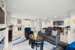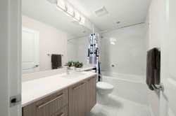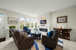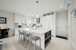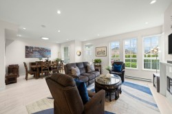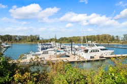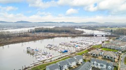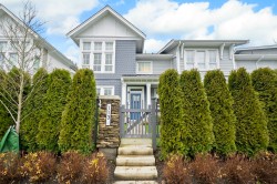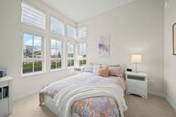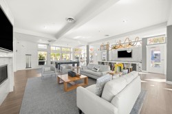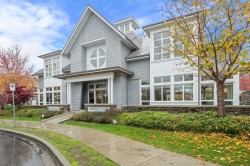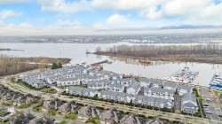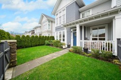 RARE 2 level END UNIT,1737 sqft. townhome in Ladner's premier waterfront community, Westhampton. Freshly upgraded w/new flooring, this light-filled residence offers 3 spacious bedrms + versatile loft ideal as office, media or flex space. The open-concept main floor impresses w/9' ceilings, expansive windows, a central fireplace & chef-inspired quartz kitchen w/full-height cabinetry, integrated fridge, gas range, quartz island & premium appls. Upstairs features dramatic 8'-11' ceilings, a luxurious primary retreat w/walk-in closet & spa-style ensuite. Comfort ensured year-round w/heat/AC, private hedged yard & side-by-side double garage.Ownership incl. access to the Hampton Club w/pool,hot tub,fitness centre,sport court & guest suites.Steps to marina,golf,river trails & Nielsen Grove School