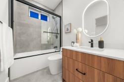 This exceptional brand-new residence offers 9 bed, 9 bath, and 4,819sqft of thoughtfully designed living space on a 6,063 sq ft lot. The home includes a 2-bedroom legal suite plus a 1-bedroom garden suite, delivering excellent rental potential of $4,800+ per month. The basement also features a private theatre room, along with an additional 2 bedrooms and a full bathroom, ideal for extended family or guests. Finished to the highest standards, this stunning modern home showcases high-end appliances, a spice kitchen, air conditioning, and radiant in-floor heating throughout. Enjoy indoor-outdoor living with a spacious 218 sq ft covered deck on the top floor, perfect for year-round entertaining. Located in a desirable North Delta neighbourhood, close to schools, shopping, transit.