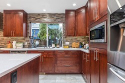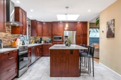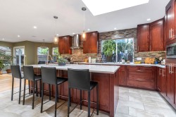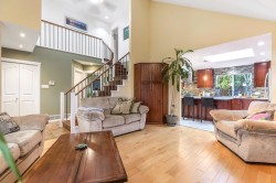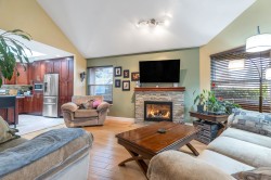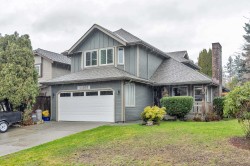 Situated in one of SUNSHINE HILLS most convenient yet quiet cul-de-sac locations! This beautiful home has many updates including new furnace & AIR CONDITIONING in 2023, all bathrooms, exterior completely repainted plus huge Island Kitchen (with stainless appliances). 2 gas fireplaces-in the Living Room & Family Room. Master Bedroom has a large walk-in closet with many built-ins and ensuite with double sinks and over-size shower. Fenced backyard features a cozy covered lounge area with hot tub. Cougar Canyon Elementary & Seaquam Secondary school catchments. Walking distance to shops, restaurants & more. Move in ready!