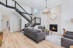 Discover your perfect home! This stunning 3-storey custom-built residence in Delta blends modern luxury with timeless design. Enjoy 12-ft ceilings in the living room and 14-ft in the family room, elegant glass staircases, designer woodwork, and striking lighting. The chef-inspired kitchen features a 45 sq.ft. Cambria stone island and opens to a covered patio with firepit. 2022 upgrades include new luxury vinyl flooring, carpet, full interior paint, and updated fixtures. Relax in comfort with radiant heating, HRV, central A/C, and a steam shower. The home also offers a main-floor bedroom with full bath, an entertainment room with wet bar, and a 2-bedroom legal suite—ideal for extended family or extra income. Close to top schools, parks, and amenities!