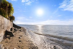 TSAWWASSEN BEACH WATERFRONT - A rare, romantic beachfront escape where ocean, sky, and sunset take centre stage. The main living space is framed by cathedral ceilings, decorative timber beams, and floor-to-ceiling windows opening to a glass-paneled deck at the water's edge. Beautifully updated with metal roof, new siding, reclaimed wood accents, new windows & doors, and upgraded electrical. One bedroom with full bath on the main and a second bedroom below with full bath and heated walk-out patio. Terraced concrete landscaping creates private outdoor living with lighting and hot tub. Moor your boat out front, launch a kayak from your seawall, and live the beach --quietly, beautifully.