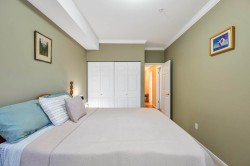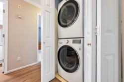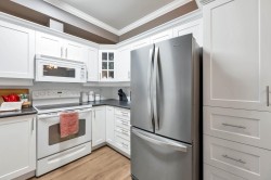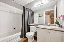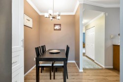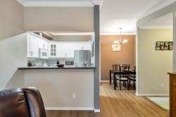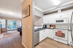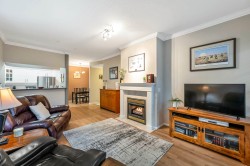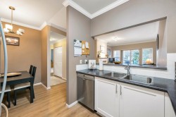 Adlington Court! Rarely available 2 bedroom, 2 bathroom plus dedicated den condo, an exceptional find, as true den spaces are seldom offered. The versatile den is perfect for working from home, crafts, kids’ room, or guest space. Recent updates & features include new building piping, laminate flooring, Hunter Douglas blinds, & crown moulding throughout. The spacious primary bedroom features two closets and a private ensuite, while bright living and dining areas offer 9-foot ceilings. A large updated kitchen w/ eating area, cozy gas fireplace, and gas BBQ hookup add comfort. Enjoy an east-facing balcony, secure parking, and a storage locker, with gas included in the maintenance fee. Walk to shopping, amenities, and transit. Nothing to do but move in, Call Today!
