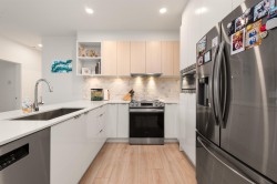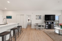 Welcome to Peregrine South, nestled in the vibrant Tsawwassen community. Discover a bright and airy second-floor condo, featuring two bedrooms and two bathrooms, complemented by an east facing patio for serene evenings. Functional floorplan with an open-concept kitchen, with bar seating for three, stainless steel appliances—including a double-door fridge—and elegant quartz countertops alongside a chic, oversized single under-mount sink. Eight-foot ceilings enhance the sense of space and luxury throughout. Enjoy the convenience of a full-size stacking front-load washer and dryer, 1 secure underground parking, and a dedicated bike storage locker. Residents have access to exceptional amenities, including a fitness centre and clubhouse. Steps to the water, and shopping come see for yourself!