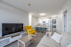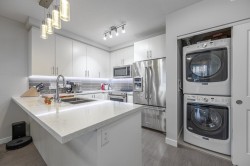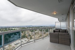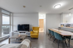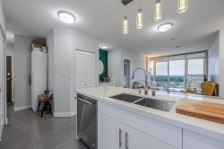 Smart home & Panoramic views 26th floor desirable unit at Delta Rise offering sweeping panoramic views of the city, ocean, and mountains. This 2017 built, 2 bedroom, 2 full bathroom residence features a smart, open floor plan with 837 sq.ft. of living space plus an extra-large 189 sq.ft. wraparound covered balcony showcasing unobstructed 180° vistas and stunning sunsets. Interior highlights include smart features recessed LED lighting, designer cabinetry, premium KitchenAid stainless steel appliances, glossy tile backsplash, and polished quartz countertops with eating bar. Enjoy low strata fees, full gym, large indoor amenity lounge, and expansive outdoor deck with BBQs, playground, & putting green—ideal for entertaining. Pet-friendly building. quick possession available. OH Sat 12-4 PM.