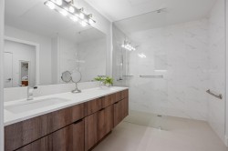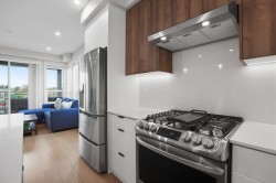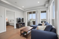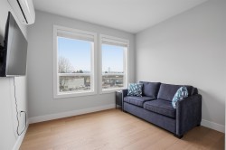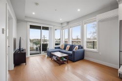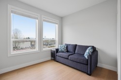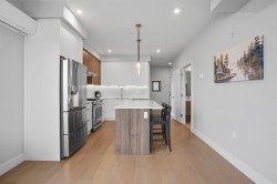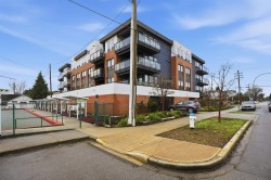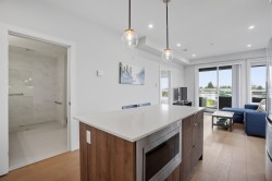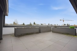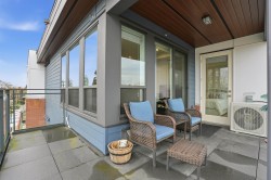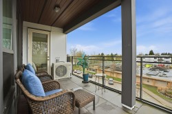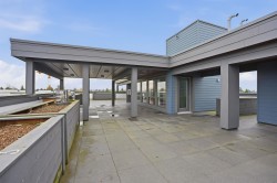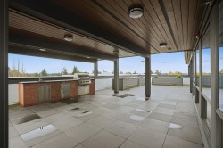 CORNER PENTHOUSE at Delta Green! Premier 55+ living in the heart of Ladner Village, directly across from Memorial Park & the Library. This Bright, private corner home features 9' ceilings, radian in-floor heating, air conditioning & a sun-filled open plan. Sleek gourmet kitchen with quartz countertops & quality finishes is perfect for hosting. Generous in-suite storage adds everyday convenience. Residents enjoy an impressive rooftop deck with garden boxes & BBQ area designed for social gatherings, plus a fitness gym & secure bike room. Steps to shops, dining & all village amenities - the ultimate walkable lifestyle.