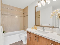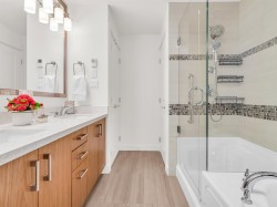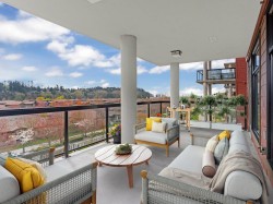 TSAWWASSEN SPRINGS – GOLF RESORT LIVING at its FINEST! This stunning, rare & super spacious 1650 sq ft, 3 bedroom suite HAS IT ALL with 9 ft ceilings, high-end kitchen w/ top of the line Fisher Paykel appliances, entertainment sized living/dining room, large master bedroom with walk in closet, separated 2nd bedroom with ensuite, 3rd bdrm for home office/den + a well organized laundry/storage room. The sun soaked oversized 22.5 X 12 ft south exposed balcony provides gas hook up for BBQ & patio heater + 180 degree views of the resort, bluff & Gulf Islands to the west. Concrete construction, geothermal heating/cooling & EV parking all within a 5 minute walk to golf course, driving range, fitness centre, Pat Quinn’s Restaurant, Nat’s Coffee & Newman’s Fine Foods. Come & enjoy the lifestyle!!