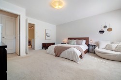 2 LEVELS | 4 PARKING | WALK-OUT BACKYARD - Welcome home to Lakeside by Polygon at Sunstone, where space, light, and community come together. This 1,965 sq ft, two-level home offers an open, airy main floor with 9-foot ceilings and radiant in-floor heating—perfect for everyday family life. The kitchen sits at the heart of the home, finished with quartz countertops, marble backsplash, and a gas cooktop, and opens directly to a flat walk-out deck with gas BBQ hookup and a private backyard, ideal for kids, pets, and summer evenings. Upstairs features generously sized bedrooms designed for growing families. Enjoy 4 parking spaces and access to a 12,000 sq ft residents-only clubhouse with resort-style amenities. A place to settle in, grow, and truly feel at home.