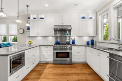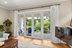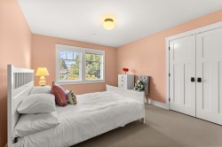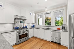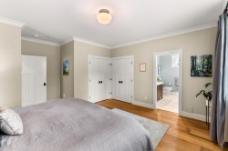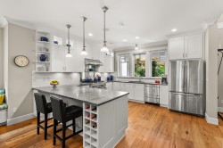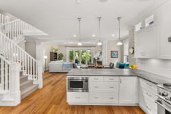 Step into timeless elegance with this custom built home, where luxury details meet everyday comfort. The beautifully landscaped front gardens set the tone while the private south-facing backyard offers a breathtaking retreat. Inside, the open-concept design is filled with natural light, featuring 10ft ceilings. Duchateau engineered hardwood and Rejuvination lighting fixtures. The chef's kitchen is a true showstopper with marble counters, shaker cabinetry and DCS appliances including a 6-burner gas range. The primary bedroom on the main floor is your sanctuary, complete with his & her closets and a spa-like ensuite featuring marble finishes and a deep solar tub. Euroline windows, exquisite millwork, solar panels and meticulous care throughout make this home as efficient as it is beautiful.
