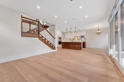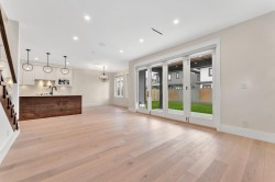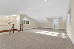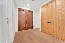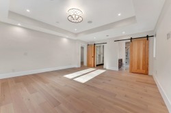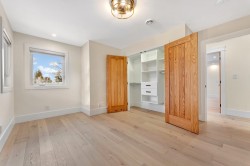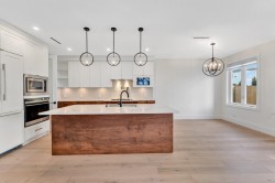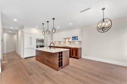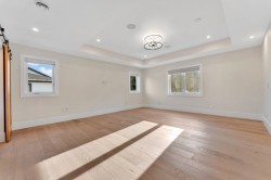 This stunning property offers a perfect blend of comfort and elegance, ideal for modern family living and a bonus mortgage helper if wanted. The spacious family room features bi-fold doors opening to a covered patio with a gas hookup, perfect for entertaining. The gourmet kitchen boasts Fisher Paykel appliances, a gas cooktop with a pot filler, and a walk-in pantry. The main floor also includes a guest bedroom and bathroom. The primary bed features a large walk-in closet and a spa-like ensuite with dual vanity, steam shower, and soaker tub. Upstairs, enjoy a spacious balcony with a gas hookup and water line. The third floor has a huge rec room with vaulted ceilings and an additional full bath. Includes A/C, HRV, radiant in-floor heating, and more.