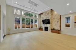 Brand New Luxury Home in Beach Grove – South-Facing Backyard Located in the highly sought-after Beach Grove community, this brand new 3,328 sq ft luxury residence offers refined British-style design and exceptional craftsmanship throughout. Enjoy a stunning 14-ft high ceiling in the family room, complete with a gas fireplace and expansive two-tone kitchen cabinetry. The open-concept gourmet kitchen is outfitted with a gas cooktop, pot filler, extra-wide stainless steel fridge, wine cooler, and custom wine display—perfect for elevated entertaining. Engineered oak hardwood floors span the main level. The second floor features 4 spacious bedrooms, including 2 private ensuites plus 2 Jack & Jill bedrooms, all designed with comfort and functionality in mind. Enjoy serene golf course views
