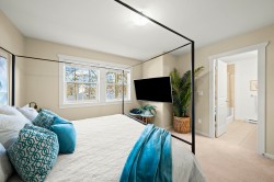 Sought-after, Central Park West! Rarely available TWO level, 3 bed/2.5 bath townhome is perfectly positioned next to Lions Park & directly across from Trenant Park. Truly a "walk-everywhere" living w/shops, restaurants, transit & schools steps away. Offering 1,358 sqft over 2 levels, this home is exceptionally bright w/9' ceilings on the main. Enjoy a spacious open concept layout & a lrg island that anchors the kitchen, living, &dining areas. Upstairs you'll find impressively lrg,oversized bedrooms w/a stunning primary retreat, walk-in closet &spa-inspired 5pc ensuite. Step right out your front door to a private,fully fenced yard w/lush turf, perfect for kids, pets, or morning coffee. Upstairs laundry+ double garage (444 sqft) with epoxy flooring. Meticulously maintained and move-in ready.
