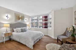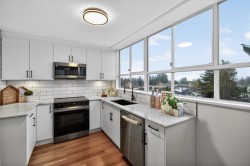 Welcome to your new home at Chancellor Place. Tucked away in the back quiet corner, you will find this bright, stunning, fully renovated unit with an open concept living, dining, kitchen area perfect for entertaining. Over 900 sq ft of living space which includes one bed, one bath plus flex room. Enjoy beautiful sunsets from your enclosed balcony/office. Situated next door to Sun Farms fresh fruits and vegs and within a block to Cactus Club, Timmy's, The Keg, liquor store, banks, schools, pub and plenty of fast food joints and Indian restaurants. Chancellor Place offers Underground Parking, Storage locker, Gym, Indoor Pool and Beautiful Gardens. Easy access to all the major highways.