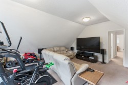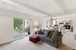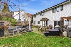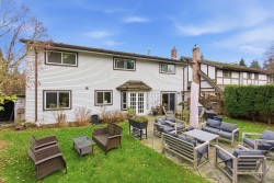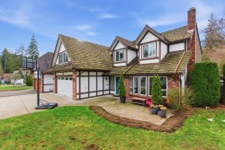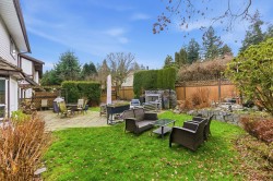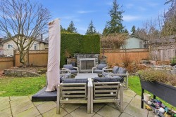 SUNSHINE HILLS - 4 bed family home on private & sunny WEST lot in QUIET cul-de-sac location! Great floor plan with warm H/W's, welcoming foyer & kitchen opening to family rm with stone f/p & doors to private patio & back yard oasis - great outdoor living space! Formal dining rm opens to bright & spacious living rm with stylish f/p - ideal for entertaining!Upstairs features 4 spacious bedrooms - primary boasts spa inspired ensuite. Huge games rm is ideal kid space, media rm, gym, office or 5th bdrm. Updates include reno'd baths & laundry rm, A/C, high efficiency furnace, vinyl windows, newer hot water tank, washer, dryer & driveway. Private back yard features expansive patio, stone gas fireplace, BBQ with pergola - all surrounded by mature gardens. Short walk to schools!