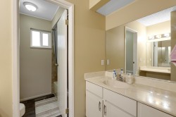 Dear Buyer, be captivated by the grand entry with soaring vaulted ceilings and a bright, open feel. The freshly painted main floor offers generous living space, including a spacious living room, dining area, kitchen with newer stainless steel appliances and eating area, cozy family room, and a convenient main-floor bedroom. Upstairs features three additional bedrooms and two full baths. The primary bedroom includes double closets and a private 3-piece ensuite. Numerous updates include a full exterior renovation, rebuilt deck with glass railings and skylights, new fencing, roof and gutters (2020), and hot water tank (2021). Enjoy the perfectly tiered backyard—ideal for relaxing or entertaining.