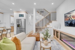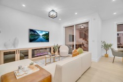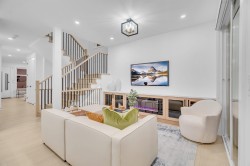 Welcome to this brand-new half duplex in North Delta! This spacious home features 6 bedrooms & 5 full bathrooms. On the main level, you’ll find a formal living room, large kitchen with huge island that seats 4, spice kitchen, dining area, cozy family room, full bathroom, covered patio & a large backyard with ample green space. Upstairs, the grand primary bedroom boasts walk-in closet, luxurious ensuite bathroom and private covered balcony. Additionally, there are 2 generously sized bedrooms and another full bathroom on this level, plus a huge covered balcony. The lower level offers a theatre room, full bathroom and a Legal 2 bedroom rental suite with a separate entrance, perfect for mortgage help. Additional features include CCTV cameras, epoxy floors in garage & plug for EV Charger.