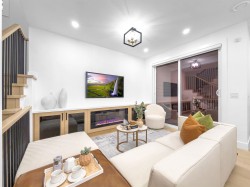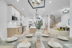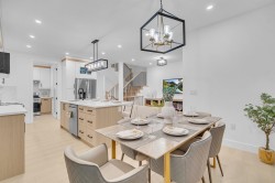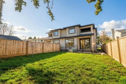 Welcome to this brand-new half duplex in North Delta! This spacious home features 6 bedrooms & 5 full bathrooms. On the main level, you’ll find a formal living room, large kitchen with huge island that seats 4, spice kitchen, dining area, cozy family room, full bathroom, covered patio & a large backyard with ample green space. Upstairs, the grand primary bedroom boasts walk-in closet, luxurious ensuite bathroom and private covered balcony. Additionally, there are 2 generously sized bedrooms and another full bathroom on this level, plus a huge covered balcony. The lower level offers a theatre room, full bathroom and a Legal 2 bedroom rental suite with a separate entrance, perfect for mortgage help. Additional features include CCTV cameras, epoxy floors in garage & plug for EV Charger.