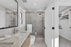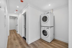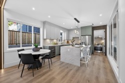 Brand-new modern West Coast 1/2 duplex on a prime corner lot w/ unobstructed Burns Bog views, 3,022 sq.ft. per side & 390 sq. ft. of covered decks on 9,000 sq.ft. lot (4,500 sq. ft. per unit). Features include a side-by-side double garage & 53-ft driveway w/ parking for up to 8 vehicles. Open-concept main floor,floor-to-ceiling windows & designer kitchen w/ double fridge,wine fridge,gas range & hidden spice kitchen, a main-floor bedroom w/ full bath. Upstairs has four bright bedrooms,full laundry & a primary suite w/ California Closets & spa-inspired ensuite,covered patio. Basement w/ 2-bedroom legal suite & rec room w/ full bath. Finished w/ custom cabinetry,slab-marble feature wall,LED lighting,glass railings,Control4 smart home,AC&tankless hotwater. Open House Sat/Sun, Feb 7th-8th 1-4PM