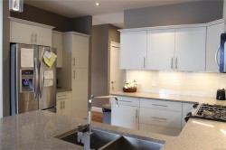 Big 3 Level Home In The Properties Of Maple Bay. This custom built 2,820 sq ft, 3 bedroom, 4 bathroom duplex has an open plan living & dining room with cathedral ceilings, gas fireplace & access to the sunny back deck. The kitchen comes with lots of storage, granite countertops & peninsula for entertaining. Upstairs has a huge primary bedroom with walk in closet & luxurious 5 piece ensuite with separate soaker tub & shower. There are 2 further bedrooms & a 4 piece bathroom on this floor. On the lower level you will find all the storage you will need, a big rec room with sliding doors going to the fenced yard, office area and a 2 piece bathroom. Features include 9 ft ceilings, heat pump, deluxe trim & finishing. There is a double garage & plenty of room for parking. Located close to schools, trails & beach this really is a gem.