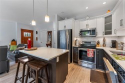 Welcome Home to this well appointed 8yr old, rancher style duplex, offering comfort, privacy and convenience. The layout features luxury vinyl plank flooring throughout, 3 bedrooms, including a spacious primary with a walk-in closet. The kitchen is equipped with quartz countertops, stainless steel appliances and plenty of storage/ counter space. It opens into a bright living area with natural light from large windows, accented by a cozy fireplace. An insulated, 3' high crawl space under the living area provides a 1000 sq.ft. of heated, dry storage. Sit on the private back deck or by the creek as you watch the deer, ducks, herons, eagles, owls and more as they soar above or forage at the back of the property. The south facing backyard with a handy garden shed is a gardener's delight. Booked today, for your private tour.