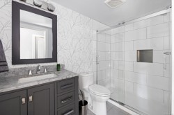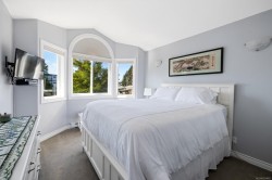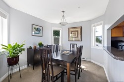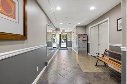 This top-floor corner unit is a rare opportunity in a beautifully maintained 55+ community. With 2 beds, 2 baths & 1084sqft. of sunlit living space, this condo sure is special. The original owners have thoughtfully updated it over the years: remodelled kitchen (2014) & brand-new appliances, both bathrooms redone in 2022, window coverings (2021), plus a lifetime-warranty hot water tank. Step inside & enjoy a spacious living room with a cozy gas fireplace, inviting dining area, handy office nook & a private deck for morning coffee or evening sunsets. Vaulted ceilings in the guest bedroom & primary suite create an airy, elegant feel, with the primary boasting a walk-in closet & gorgeous ensuite. One cat or small dog (under 22 lbs) permitted. Secure entry, elevator & one parking stall included. Steps from downtown, trails, & parks—ideal for walking or exploring with your dog. With reasonable strata fees & very low hydro and gas bills, this is one not to miss.