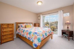 Welcome to “On the Park,” a well-kept 55+ community steps from Centennial Park. This bright & welcoming top-floor condo offers 1,139 sq ft with 2 bedrooms and 2 full bathrooms, including a spacious primary bedroom w/its own ensuite. The southern exposure brings in beautiful natural light, enhanced by vaulted ceilings & a cozy gas fireplace making the living area feel warm & open. The kitchen has been tastefully updated, & most flooring has been refreshed. A large deck off the living area, also accessible from the primary bdrm, provides a sunny place to relax. The home includes in-suite laundry & all appliances. Residents enjoy a storage locker (when available), bike/scooter storage, and exercise/multipurpose rooms. Pets are welcome with 2 cats or 1 small dog (up to 6.8 kg). The location is hard to beat right next to Centennial Park & an easy, level walk to shops, cafés, & services in downtown Duncan. A comfortable top-floor home in a friendly, walkable community.