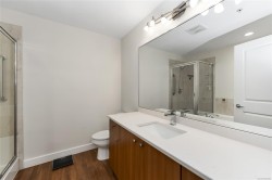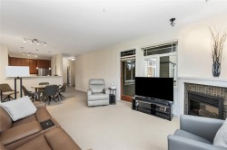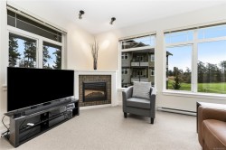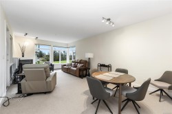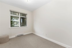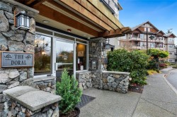 Meticulously updated, this 2 bed, 2 bath plus den on the quiet side of the building backs on to the Gorge Vale golf course. Light from the southeast flows through a bank of windows into the open concept living/dining/kitchen areas. High ceilings increase the sense of space. The primary bedroom includes a large walk-through closet plus private 4pc ensuite with soaker tub and walk-in shower. Updates in 2024/2025 include new paint, solid surface countertops, sinks and faucets throughout as well as all 6 new appliances plus a new water heater. Easy access to town via car, bike, bus, or a short walk to the Gorge Waterway. Pets welcome, one dog or one cat, with no size restrictions.