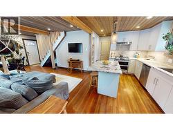 Discover mountain-modern living in this beautifully updated home, offered for the first time on the market & perfectly situated downtown close to amenities, river, trails & Rotary Park. Designed for comfort, style, and flexibility, the home features two bedrooms with the potential to convert to a third bedroom, a lofted area, and 2.5 bathrooms, ideal for full-time living, guests, and a work-from-home lifestyle! Fully refreshed, the home includes a new furnace, air conditioning, and hot water tank, offering peace of mind and energy efficiency. The kitchen showcases custom cabinetry, granite countertops, and an island with bar seating, creating a space for casual dining & entertaining. Vaulted ceilings upstairs, exposed timbers, warm wood trim, and rich solid wood flooring create an inviting mountain aesthetic, while a cozy gas fireplace anchors the living space. Thoughtful soundproofing between floors enhances privacy throughout. Retreat to the home’s spa bathroom, featuring custom tile shower, a luxurious infrared cedar sauna, and an inviting freestanding soaker tub - your own private wellness escape. Outdoor living shines with two south-facing decks, to enjoy the sun and mountain air year-round. Added convenience of three parking spaces, a rare find in a downtown setting. Blending modern upgrades with timeless mountain character, this move-in-ready property offers exceptional value as a primary residence or mountain retreat! No presentation of offers until Feb 1 @ 3 pm (id:27)