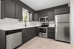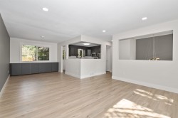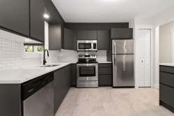 Must See! Fully renovated, like-new split-entry home in a quiet Hope neighbourhood with lovely mountain views. Close to schools, recreation, fishing, and easy freeway access. Upper level offers 3 bedrooms and a bright modern open-concept layout with new flooring, brand new kitchen featuring soft-close cabinets, quartz countertops, stainless steel appliances, and stylish LED lighting. Updated bathroom with new tub surround, and quartz vanity. Fresh paint and trim throughout. Basement finished in 2019 with a functional in-law or studio suite, open kitchen and living area, separate entry, and laundry. Extensive exterior upgrades include Hardie siding, vinyl windows, new front door with sidelights, overhead garage door, gutters, and more. Private yard and ample parking.