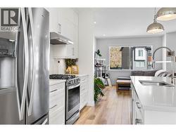 Welcome to this beautifully finished end-unit townhouse in the sought-after River Gate development at Sun Rivers. Sitting below the 6th hole, this home offers 1935 sq ft of living space across three levels and combines style and function in a prime location. The ground level entry offers a single-car garage and a large entry way. A bonus flex room currently used as workout room and 4-piece bathroom add extra convenience for guests or family. Under-stair storage and shelving in the garage make organization a breeze. On the main floor you will find an inviting open-concept space featuring a large bright kitchen with quartz countertops, a central island, gas range and a built-in coffee bar—perfect for morning routines or entertaining. Sliding glass doors lead to a private patio with fantastic views of the valley. Additionally, you have a natural gas BBQ hook-up and added greenspace thanks to the end-unit location. A 2-piece powder room rounds out the floor. Upstairs are three generous bedrooms including a spacious primary retreat on the view side, complete with a walk-in closet and luxurious 3-piece ensuite featuring a double vanity. A well-designed laundry area with built-in shelving is also located on the top level with another 4-piece main bathroom. Enjoy year-round comfort with geothermal heating and cooling, 200AMP service, and the peace of mind of a newer home with no GST. Just a short walk to local shopping, dining, and golf, this home offers both lifestyle and convenience. Book your showing today to join this great community! (id:27)
